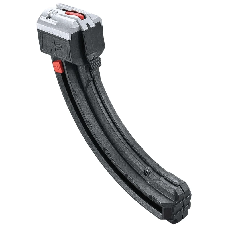 Spend more time shooting and less time reloading with this extended magazine for the Savage A22 from Butler Creek. The polymer magazine holds 25 rounds of .22 Long Rifle ammo. It features an all metal header and feed lips for reliable feeding, and a side window shows remaining rounds. It can be loaded traditionally or by using the red loading assistance lever. The spring is stainless steel for long lasting reliablility.