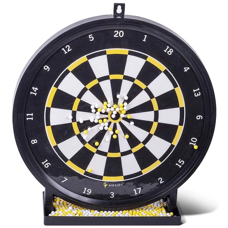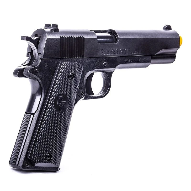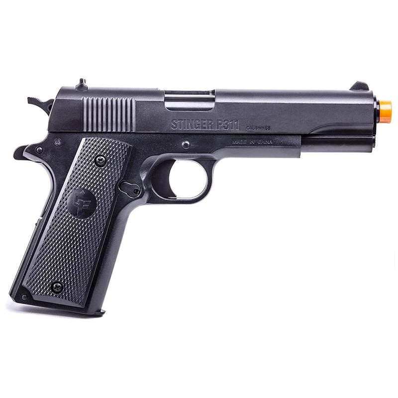As much fun as darts, the Stinger Challenge Kit features two (2) P311 Stinger Airsoft repeater pistols that hold up to 12 6mm Airsoft BBs each and shoot at velocities of up to 325 fps. The Airsoft Gel-Trap Target has rings for scoring and the tray at the base catches BBs for easy cleanup. Two packages of 500 count .12-gram Airsoft BBs are included, in two different colors, to make scoring easy. “Be the Game with GameFace”
