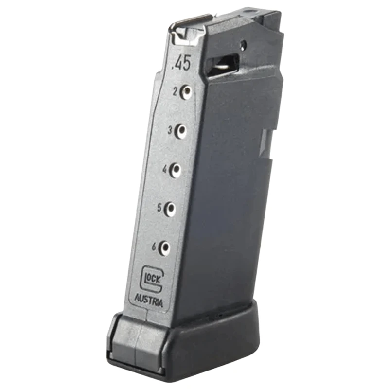 Glock G36 .45 ACP magazines have a stiff metal tube encased in the proven Glock high tech polymer. This resists deformation, even when dropped from great height or exposed to extreme environment conditions.