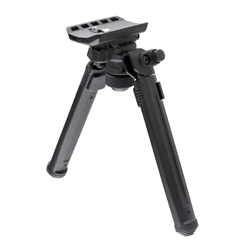 A soft rubber bipod locking knob cap is attached to the locking knob gives users a steady, non-marring forward rest while the bipod is folded. Additionally, its staggered soft rubber feet hold fast on a variety of shooting surfaces and are easily removed with a roll pin punch. Should users choose to change feet, the Magpul Bipod’s legs accept most Atlas pattern bipod replaceable feet, except for the Atlas 5-H style.