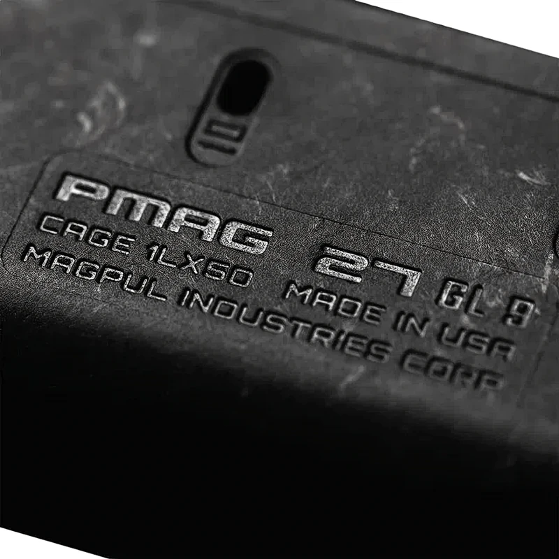 The PMAG 27 GL9 – GLOCK is a 27-round Glock 9mm magazine featuring our proprietary all-polymer construction for flawless reliability and durability over thousands of rounds. Meeting the overall length requirements for a 170MM competition magazine, the PMAG 27 GL9 offers additional capacity without the need for expensive extensions.