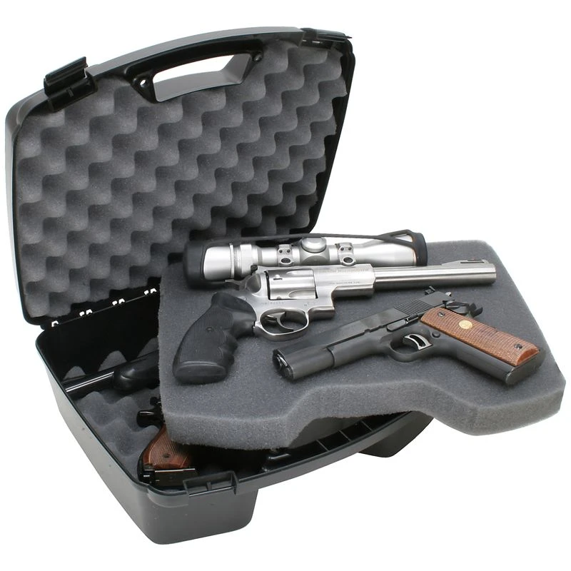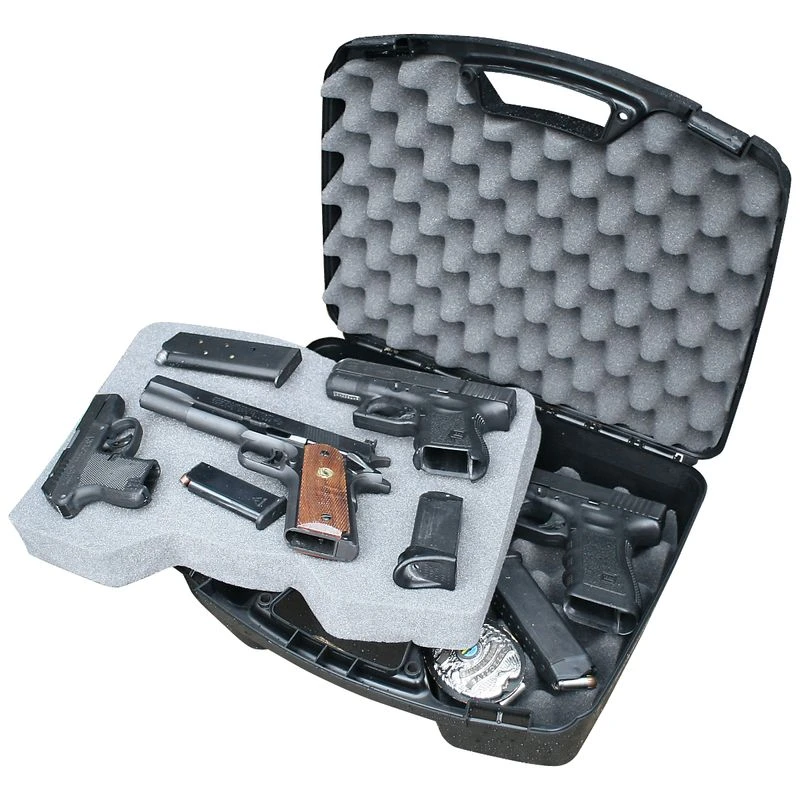 Your handguns will be safe and secure in this durable case. The MTM 4-Pistol Handgun Case features two layers of storage, providing the perfect spot for your handguns with barrel lengths of up to 8 inches. The three layers of high-quality protective foam ensure reliable protection for your valuables, while the large ergonomic handle makes for easy and comfortable carrying.