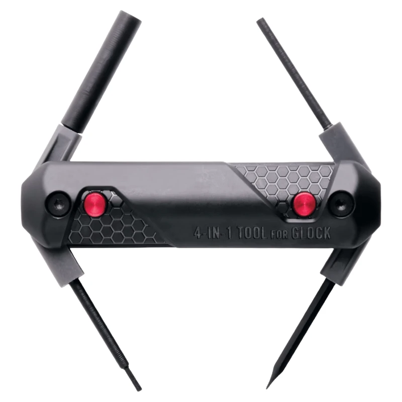 The Real Avidz 4-in-1 GLOCK Tool for Pistols is small enough to fit in your pocket, yet big enough to contain the tools you need to disassemble and maintain any GLOCK pistol. The compact, ergonomic design has 4 different tools that store inside the handle, and each tool snaps open and locks in place with the push of a button. Use the Real Avid 4-in-1 Tool to remove pins, change out front sights, remove the slide lock spring and locking block, and adjust aftermarket rear sights.Â