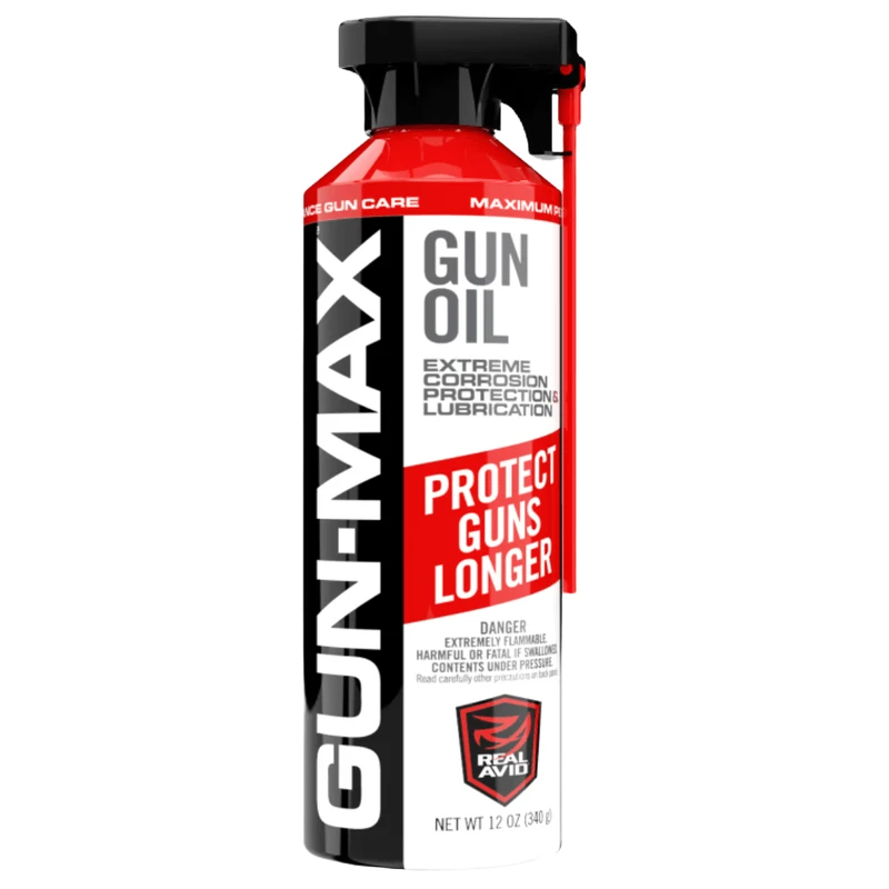 Clean, protect, and lubricate all in one step with the Real Avid Gun-Max Gun Oil. Inhibitors displace moisture, protecting against corrosion, while advanced anti-friction additives stick to metal surfaces to long-lasting lubrication. This spray gun oil is perfect for maximizing performance out of your semi-automatic shotgun, even in the harsh conditions you experience when hunting waterfowl. A 2-position nozzle straw with spray and stream options let you get the oil exactly where you need, plus it flips down for safe storage when not needed. 12-oz. can. Â