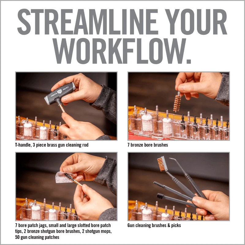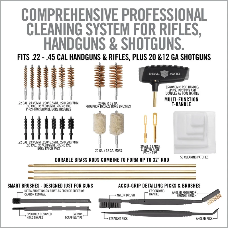 - Advanced cleaning kit, deluxe gun mat, all in one