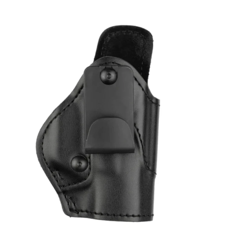 The model 27 is an inside-the-pants J-hook concealment holster. The unique J shaped belt hook allows the model 27 to be worn with any belt. This open-top, semi-rigid SafariLaminate holster is ideal for off duty or concealed carry. A polymer insert keeps the holster open for easy weapon reholstering.Â