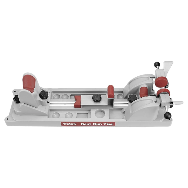 Tipton’s Best Gun Vise is the best tool you can own for working on your firearms. The vise was designed to accommodate the widest possible array of firearms for cleaning, maintenance, or gunsmithing, and is easily configurable to handle bolt-action rifles, break-open shotguns, AR-15’s, and handguns. A central aluminum channel lets the user move individual components to the ideal position for their firearm. Each individual component then adjusts to the perfect position for secure support. The rear base features two adjustable offset clamps for a tight grip on a wide range of buttstock configurations. The Best Gun Vise is extremely stiff and is made from high-quality, solvent-resistant material that will stand up to years of hard use.