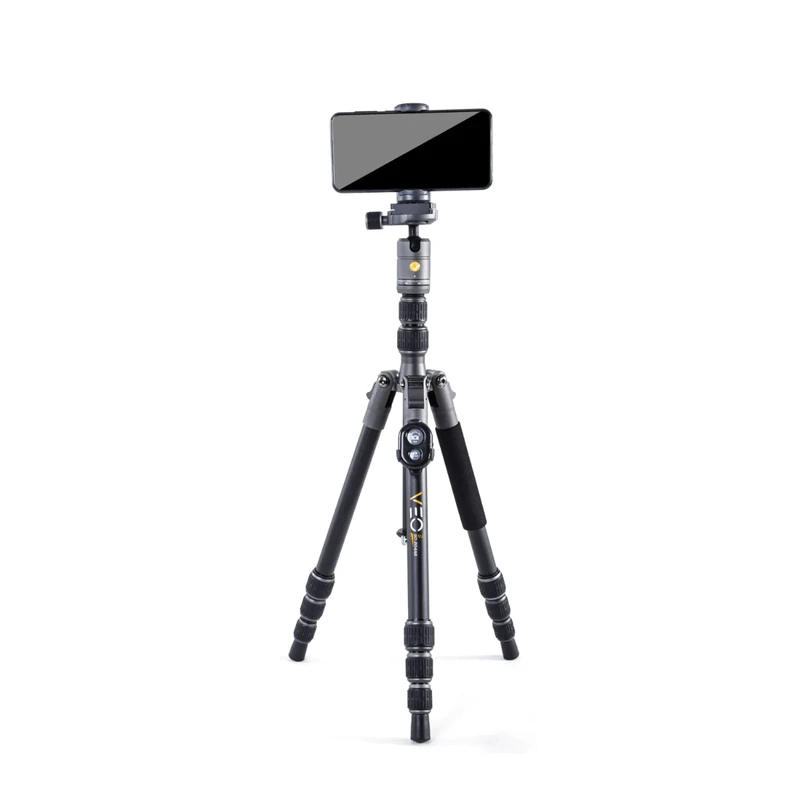 The VEO 3 GO 204AB is an ultra-compact and ultra-lightweight aluminum travel tripod with an Arca-Swiss-compatible ball head, a leg that converts to a monopod (which can double as a selfie/vlogging stick), and a smartphone adaptor. Plus, a Bluetooth remote shutter trigger offers maximum versatility for mirrorless camera kits, DSLR camera kits, and even smartphones.