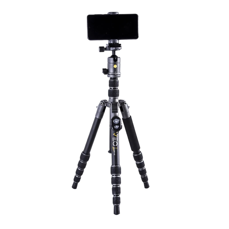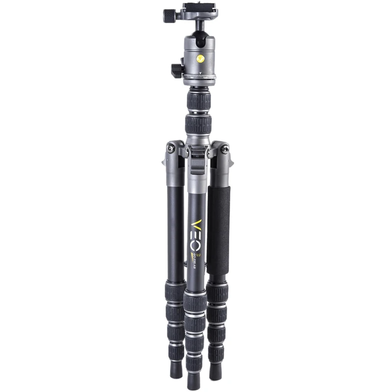 The VEO 3 GO 235AB is an ultra-compact and lightweight aluminum travel tripod with an Arca-Swiss-compatible ball head, a leg that converts to a monopod (which can double as a selfie/vlogging stick), a smartphone adapter, and a Bluetooth remote shutter trigger, offering maximum versatility for mirrorless camera kits, DSLR camera kits, and even smartphones.
