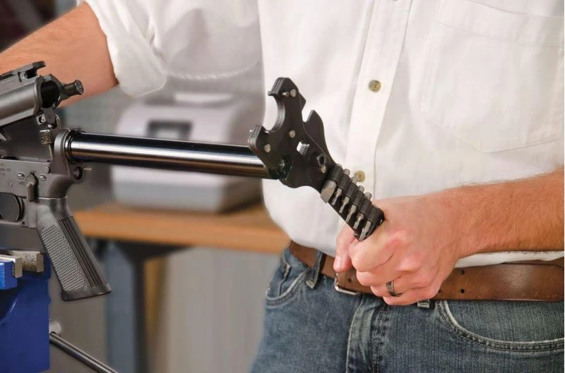 Make maintenance time easier and cover most of your AR-15 service needs with a single tool with the Wheeler Engineering Delta Series AR Combo Tool with Torque Wrench. Made of an innovative layered and laminated stamped steel, the Delta Series AR Combo Tool stands up to the demands of working on a high performance AR. This construction method allows the use of hardened steel barrel nut pins designed to hold up to heavy torque requirements. A cut out for a 1/2″ drive allows the tool to be used with a torque wrench(included) or ratchet driver. Tool also includes profiles for buffer tube lock nut and 3/4″ flash hider.